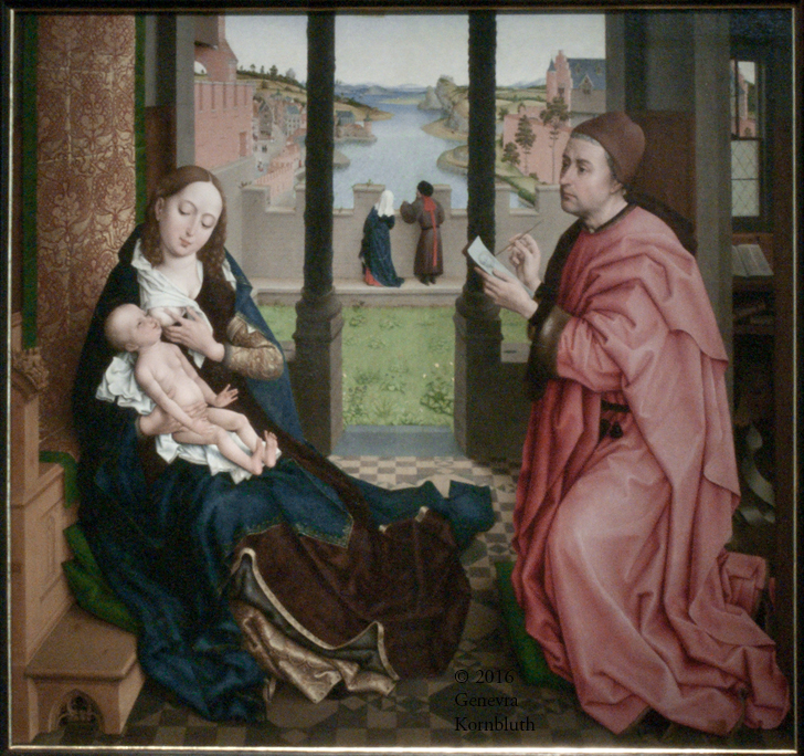 Rogier van der Weyden, St. Luke drawing the Virgin, oil transferred to canvas c.1435-40s, Hermitage ГЭ-419. For view with person for scale see Hermitage.