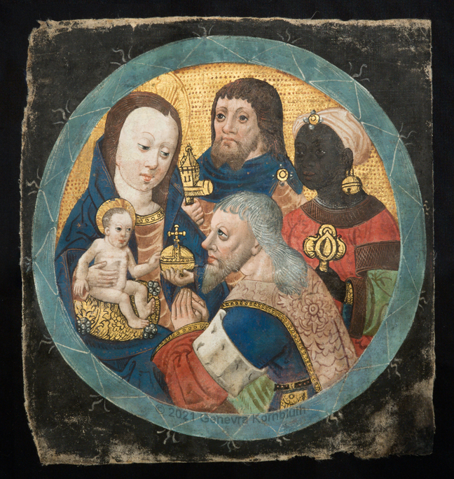 Adoration of the Magi, textile/painting/bast fiber/gold leaf, late 15th c., Netherlands? Schn M715