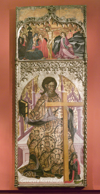 St. Andrew with donor and Crucifixion, tempera and oil on wood, Retascon Master, Aragon c.1430, MFAB 99.1