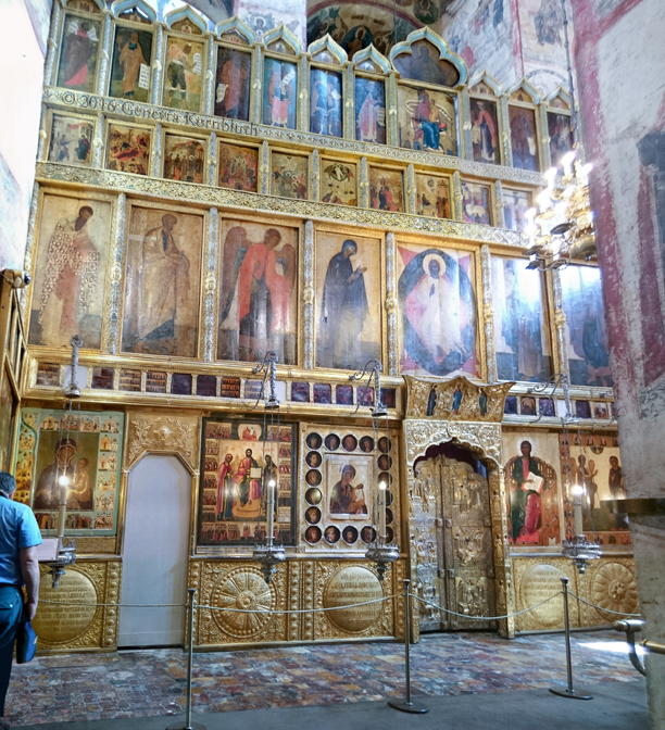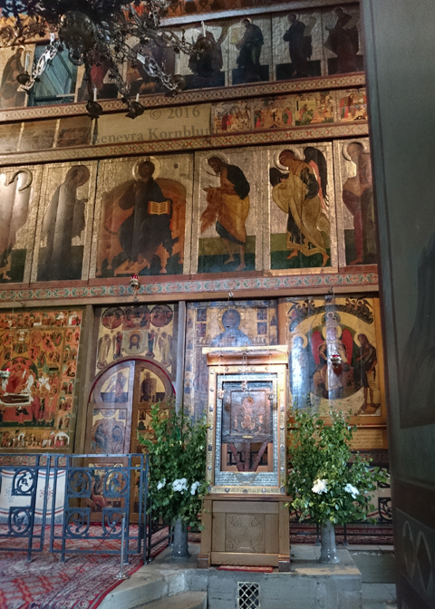 Deesis in 2nd tier iconostasis: Aaron son of Feofan 1439, Novgorod Cathedral, which has its own interior page