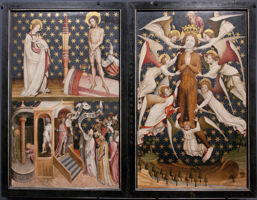 Winterfeld Diptych, tempera on oak, from church of Notre Dame in Gdansk, Gdansk c.1430, MNW Śr. 206. For additional views see MNW.