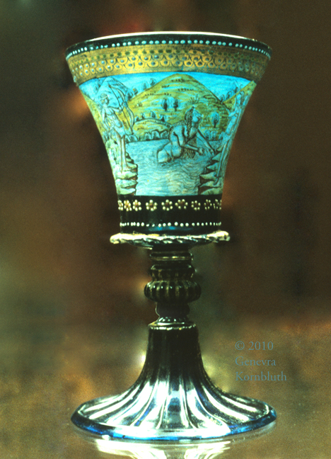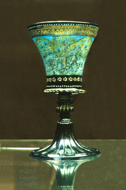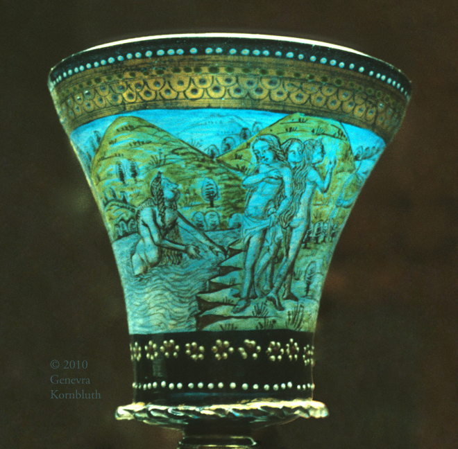 footed beaker with Creation, enameled mold-blown glass, Venice c.1490, KGM 1935,51, which has its own page