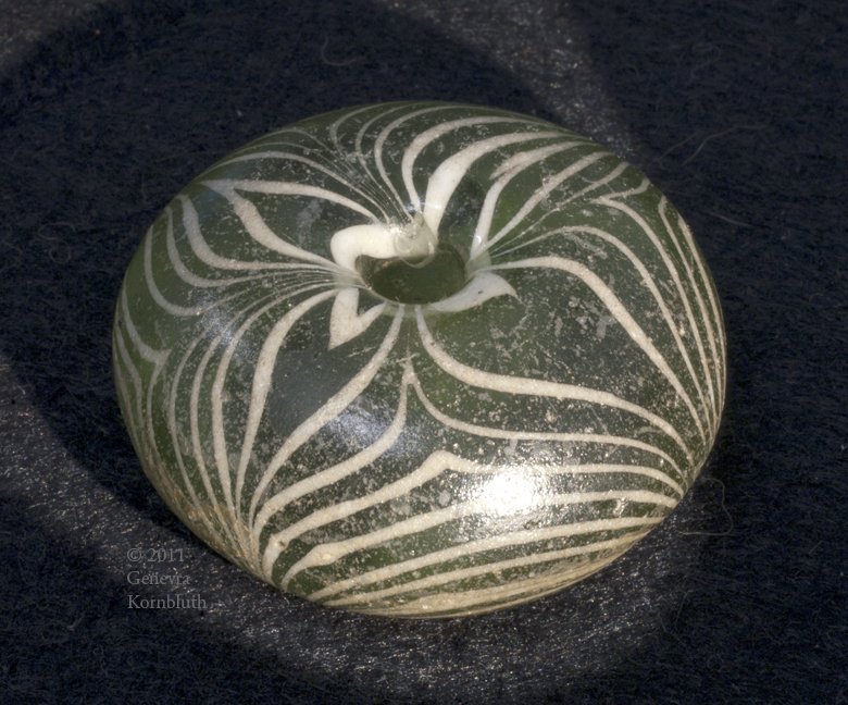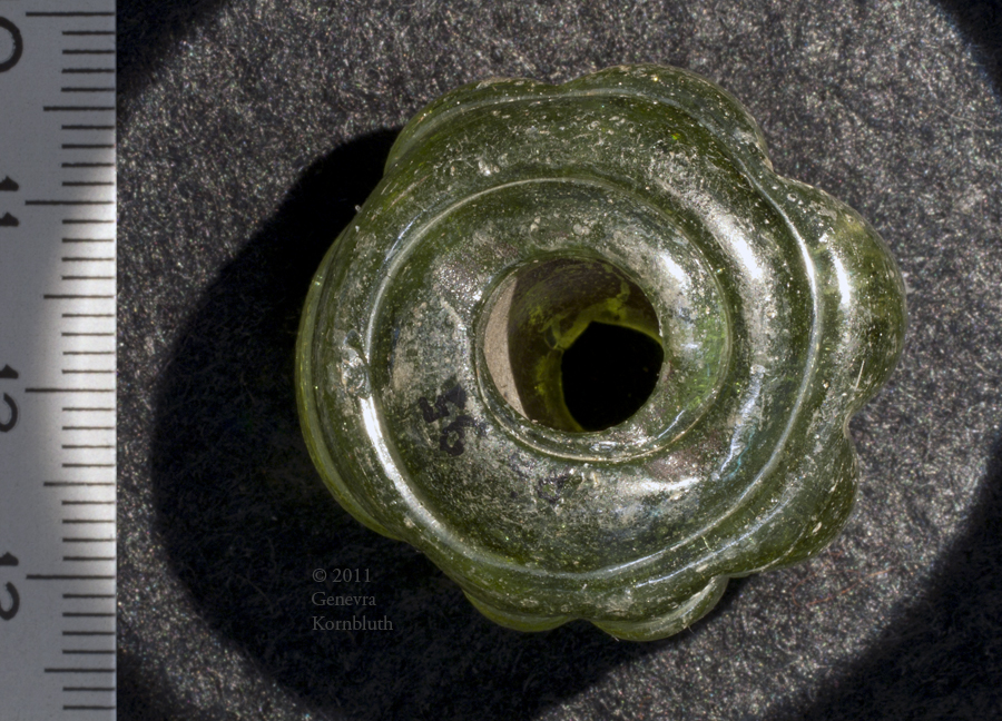 glass spindle whorl from Rhenen grave 380, Merovingian, Leiden Rh 380 G