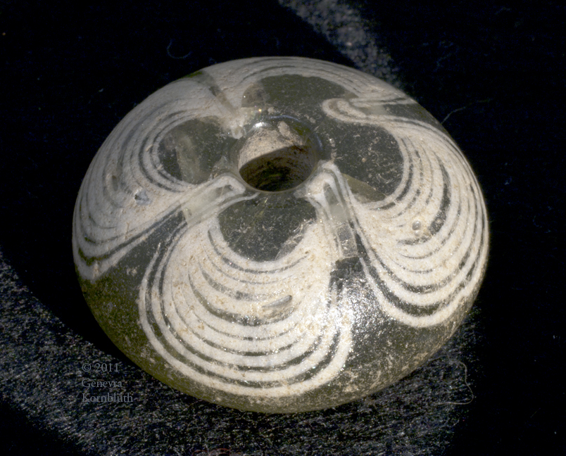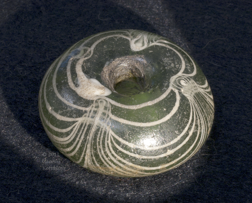 glass spindle whorl from Rhenen grave 402, Merovingian, Leiden Rh 402