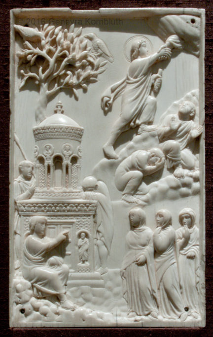 Resurrection, ivory pyxis, 6th c., eastern Mediterranean, VHM, loan from Sion CT. This work has its own page.
