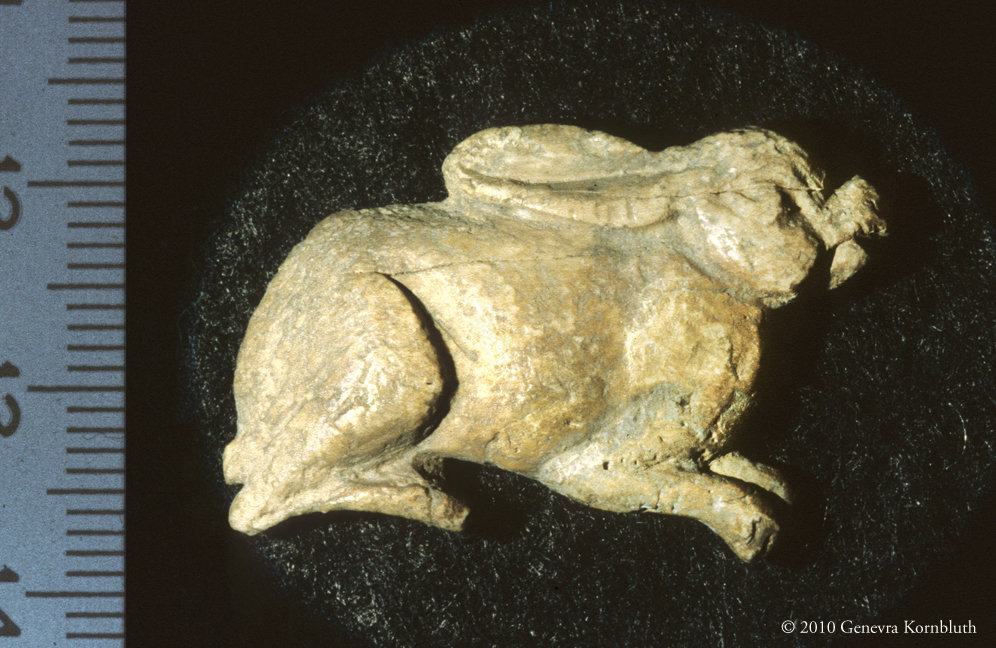 rabbit or hare crouching facing R, numbered I, Roman ivory or bone game piece, CdM Froehner 97