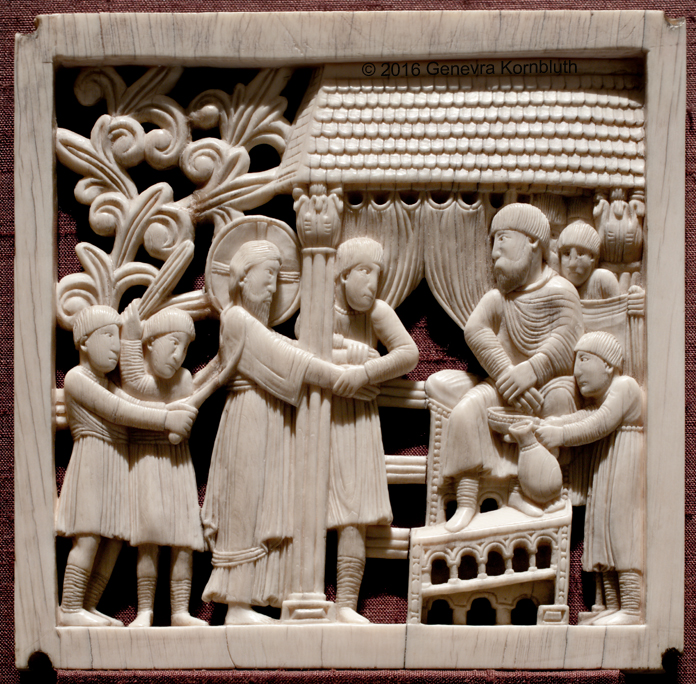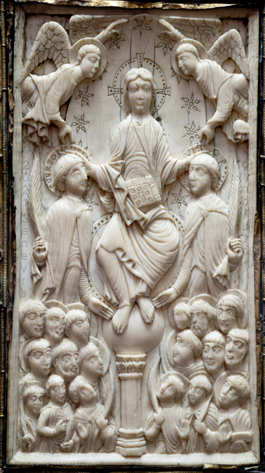 Andrews diptych, ivory, early 9th c. or poss 5th c., V&A A.47&A-1926. For oblique view see V&A.