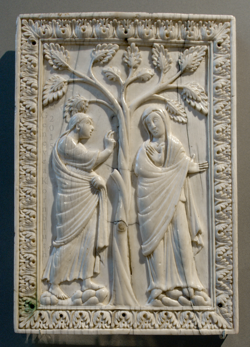 Annunciation ivory, c.1000, SMBByz 567. For detail see Berlin.