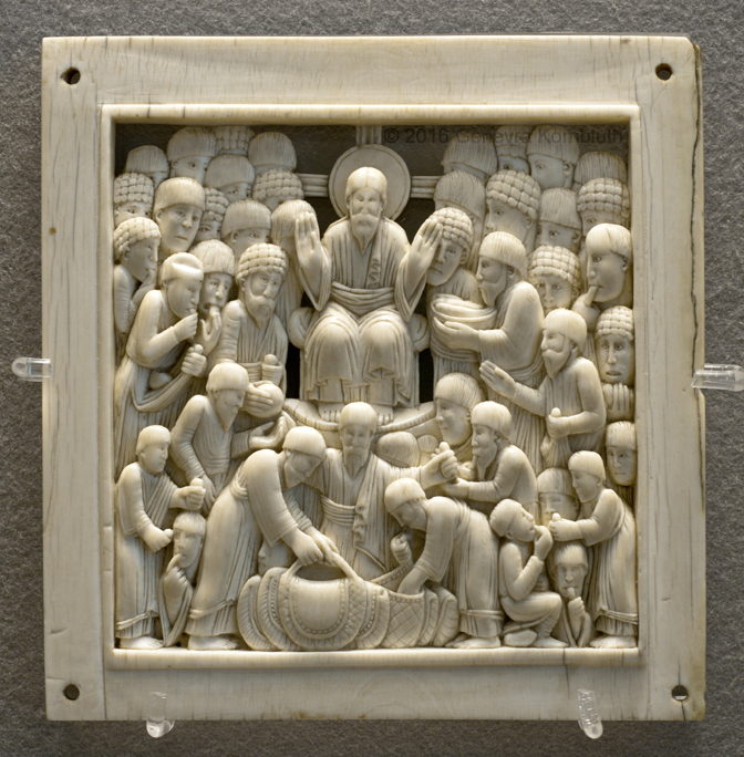 multiplication loaves/fishes, ivory fr Magdeburg Antependium, Milan c.968, Louvre OA 6301