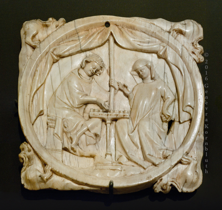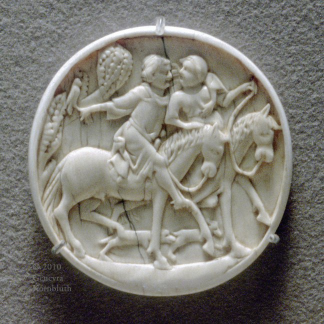 scenes of courtly love, ivory mirror back, Paris c.1300-1350, Cluny Cl.401
