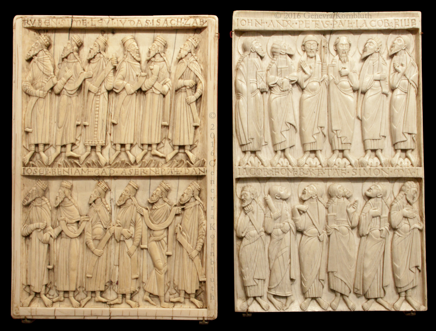 12 tribes Israel/12 apostles, ivory mid 12th c., left Cluny Cl. 23892, right loan fr. SMB Byz, which have their own page