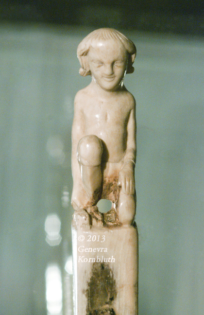 knife handle with dice player, ivory, c.1300, MAHSD