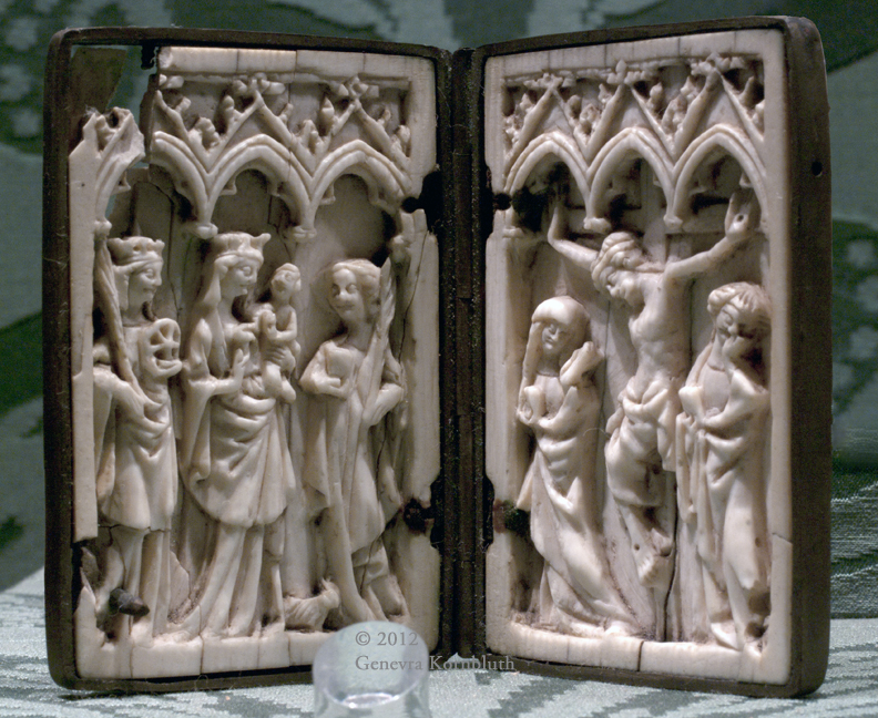 Virgin and Child w. SS. Catherine and Agnes, and Crucifixion, ivory, 14th c. France, Sens CT TC.C'7