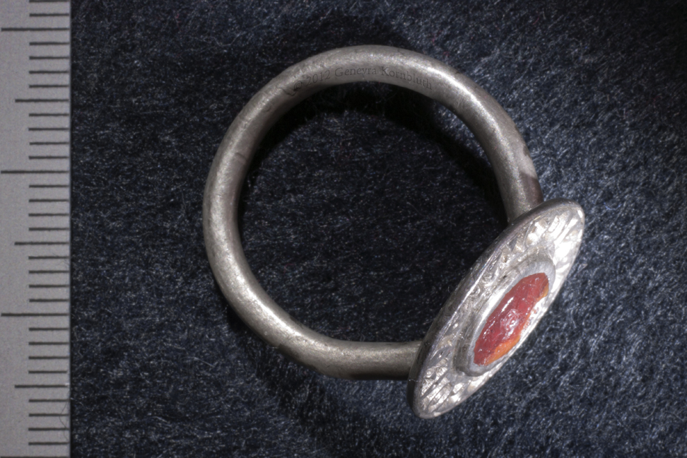 silver/chalcedony ring with AVEMARIA, from grave prob. 1302, OHM C4547a, which has its own page