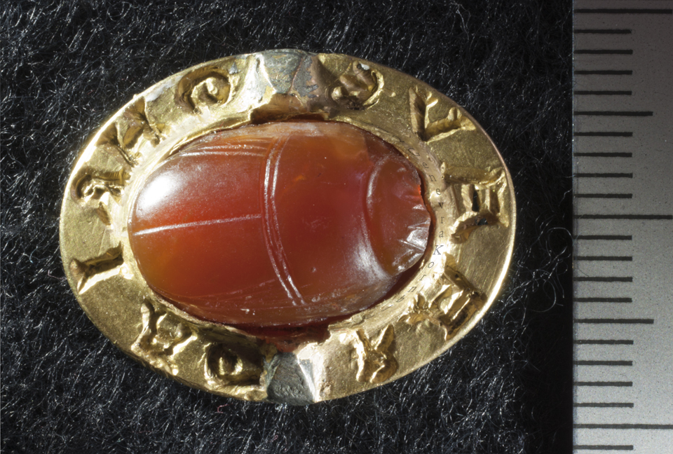 20th-c. gold ring with 1st-c. chalcedony seal, p.c., which has its own page