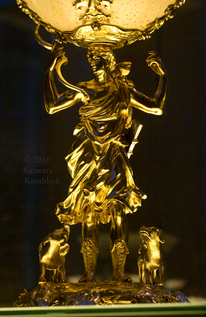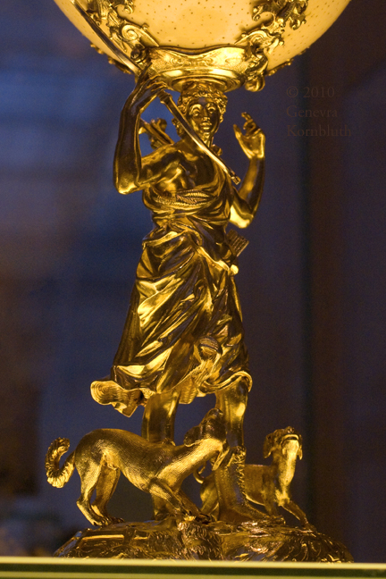 ostrich egg cup with cover: Diana the huntress, J. Lencker I, Augsburg 1620-25, MAAB