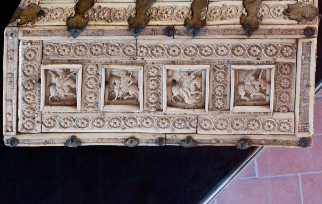 Veroli Casket, ivory and bone, mid to late 10th c., V&A 216-1865. This work has its own page with another horse.