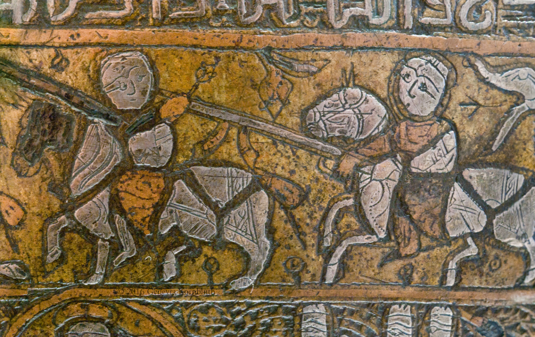 Muhammad ibn Abd al-Wahid and Hajib Mas'ud ibn Ahmad: Bobrinsky bucket, bronze with silver and copper, Afghanistan, 1163, Hermitage IR-2268. This work has its own page with more horses.