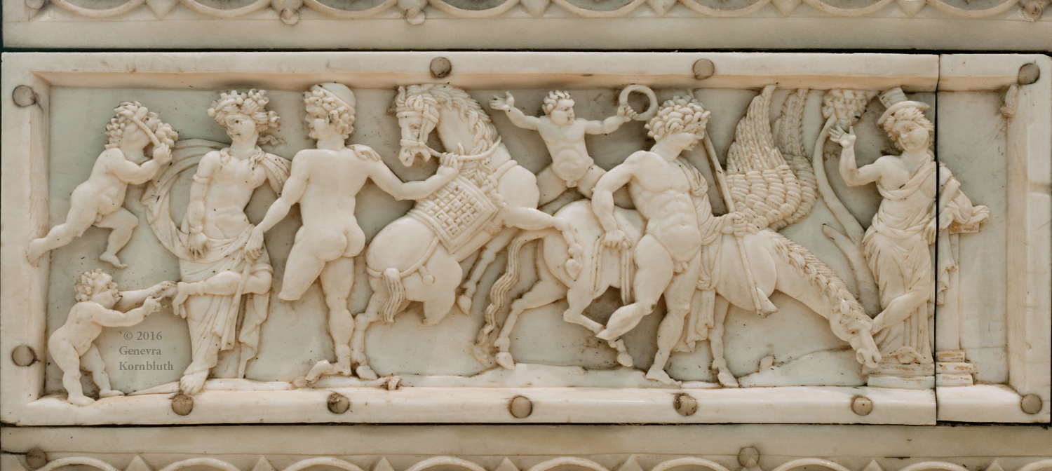 Sainte Chasse, 12th c. Byzantine ivory, Sens CT 143, which has its own page with more horses