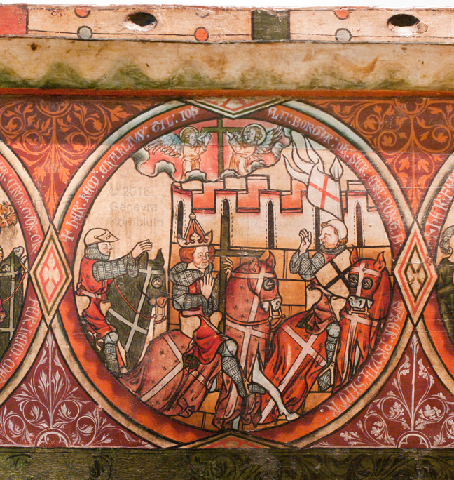 Nedstryn altar frontal, painted pine 1300-25, Bergen MA 1, which has its own page with more horses