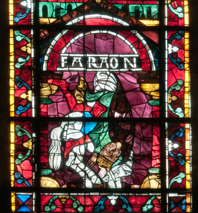 Sainte Chapelle stained glass: possessions of Job taken, 13th c. glass in 15th c. window, Cluny DS 1896 bis