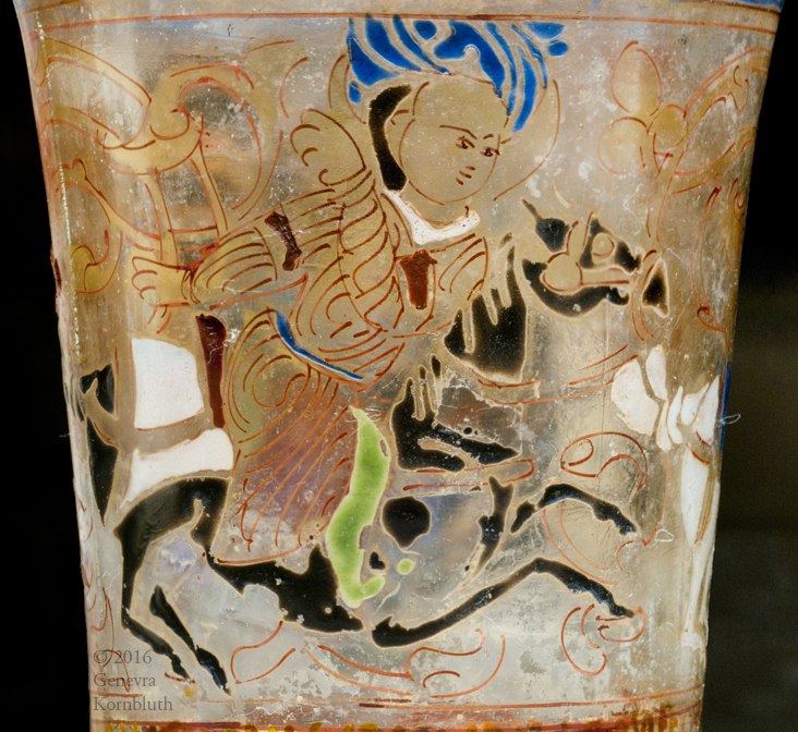beaker with polo players, enamelled and gilded blown glass, Syria, mid 13th c., Louvre OA 6131. This work has its own page with more horses.
