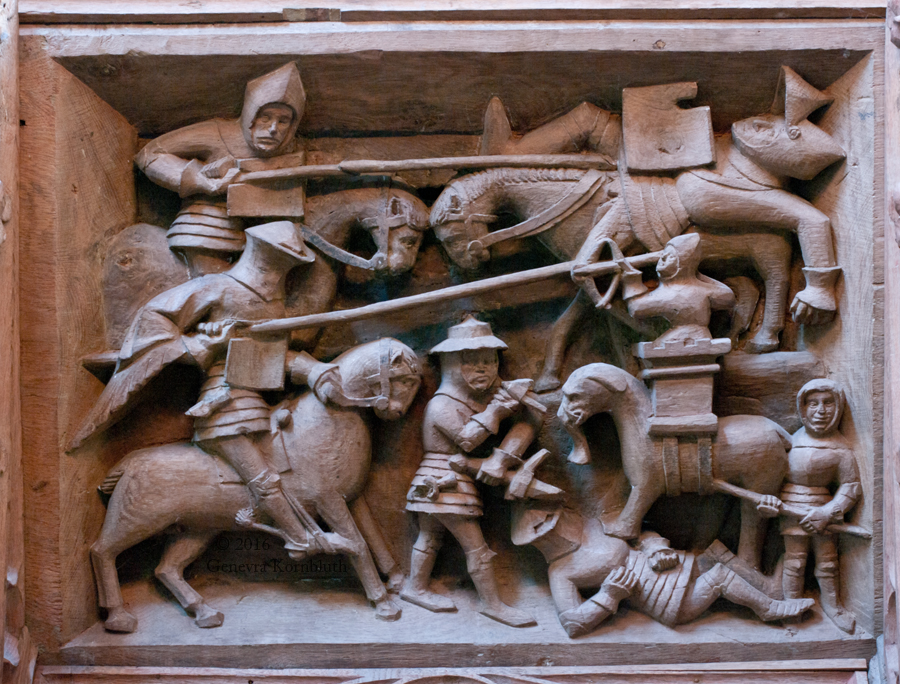 battle (I Maccabees 6), oak choir stalls, 1420, Roskilde cathedral, which has its own page with surround