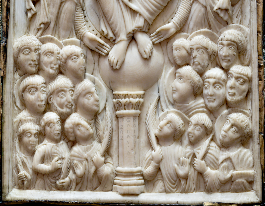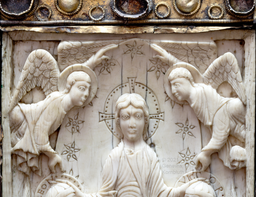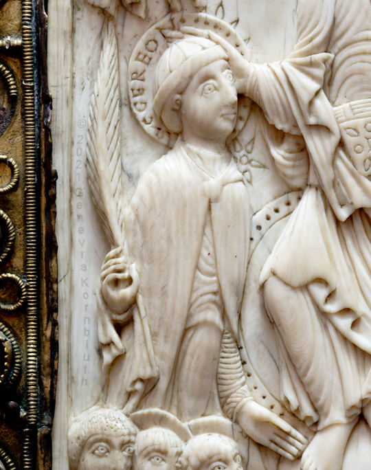 Historical Archive: Book Cover from St. Gereon cover oak with copper, originally gilt, 7th to 12th century ivory 17.7 x 9.8 cm (7 x 3.9 inches) ivory panel back Byzantine, 5th-6th century ivory panel front Cologne, around 1000 Cologne, Schnütgen Museum B98 |