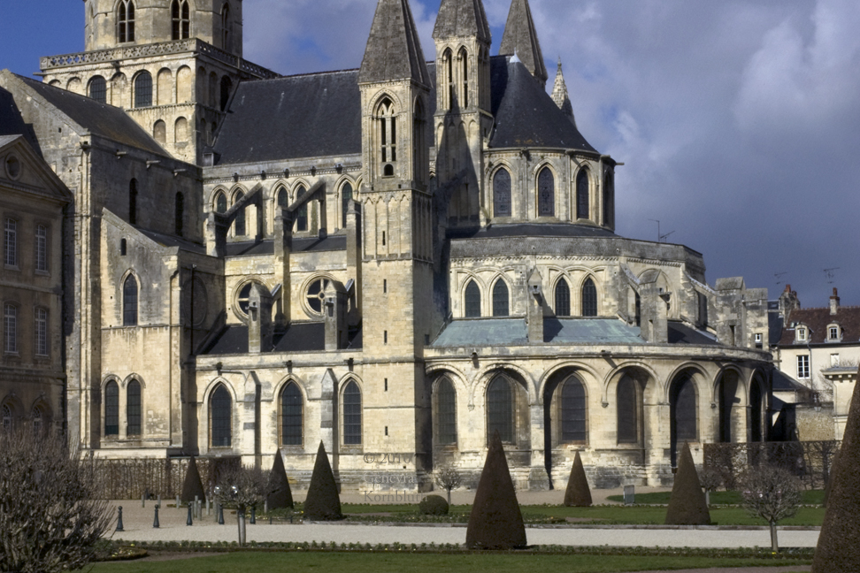 Caen, Saint-Étienne, 11th-14th c., exterior: south transept, choir, and chevet