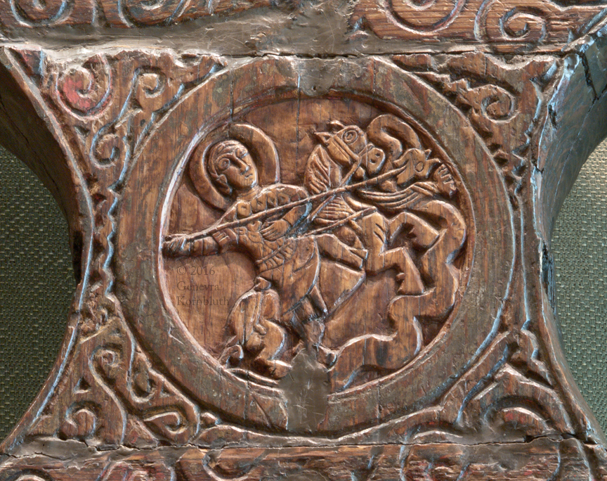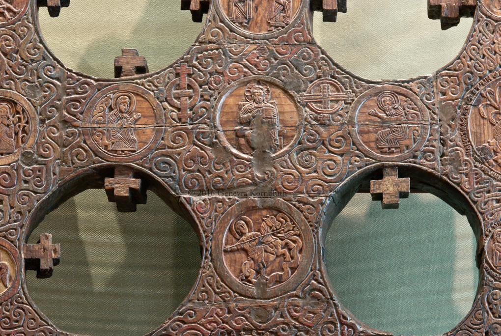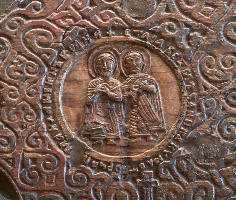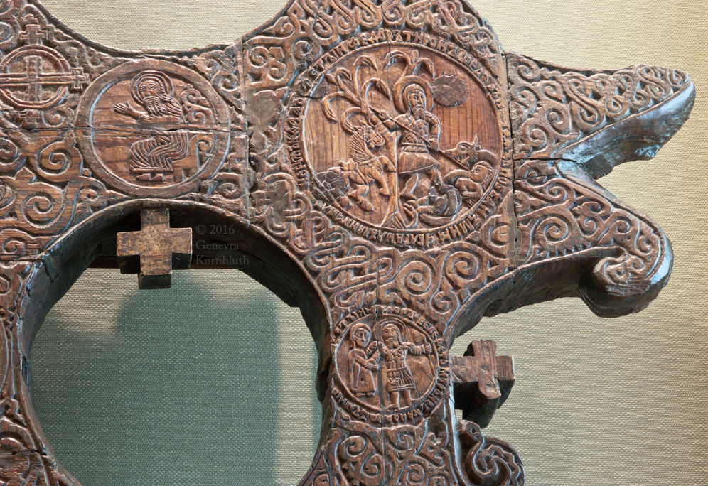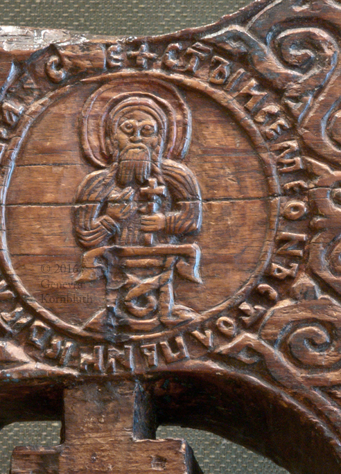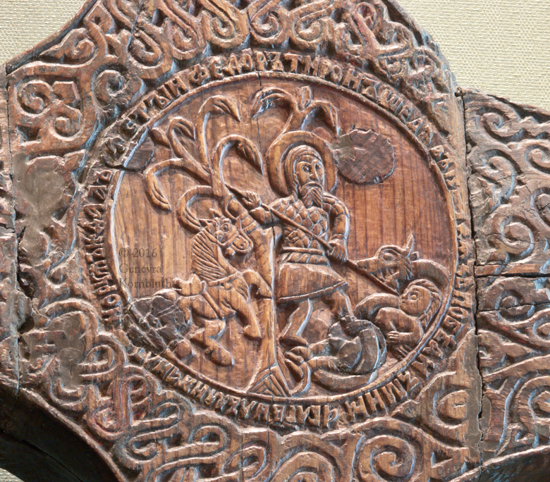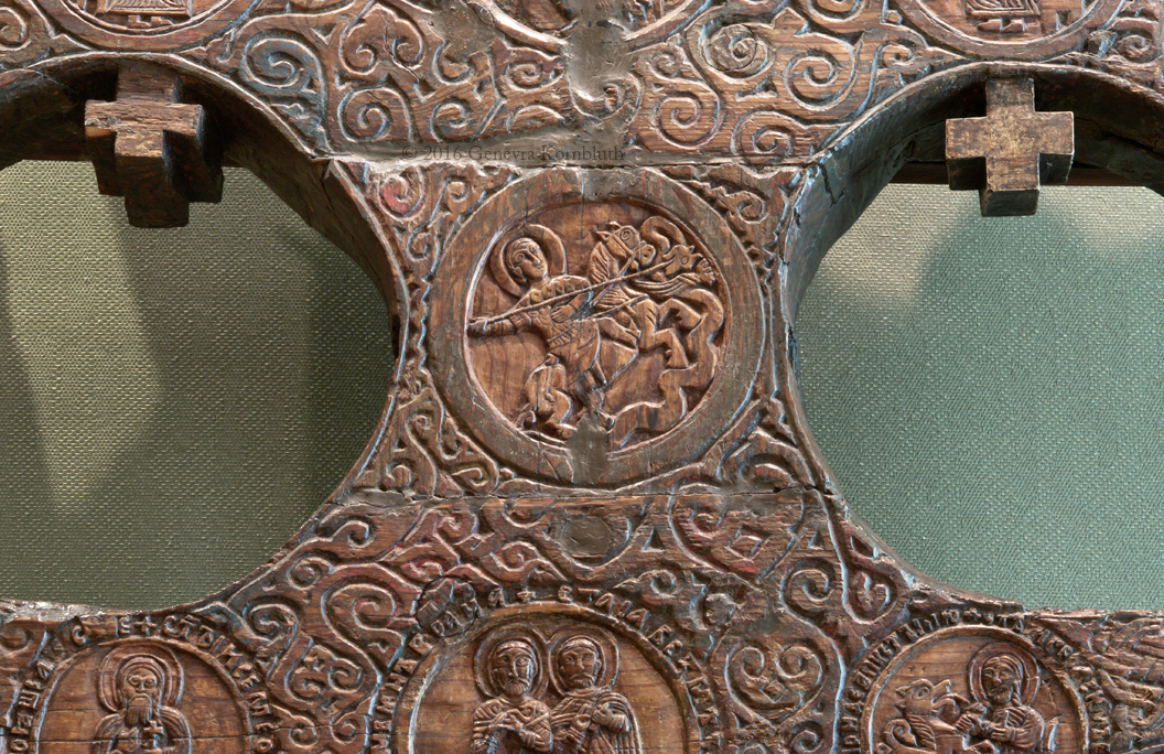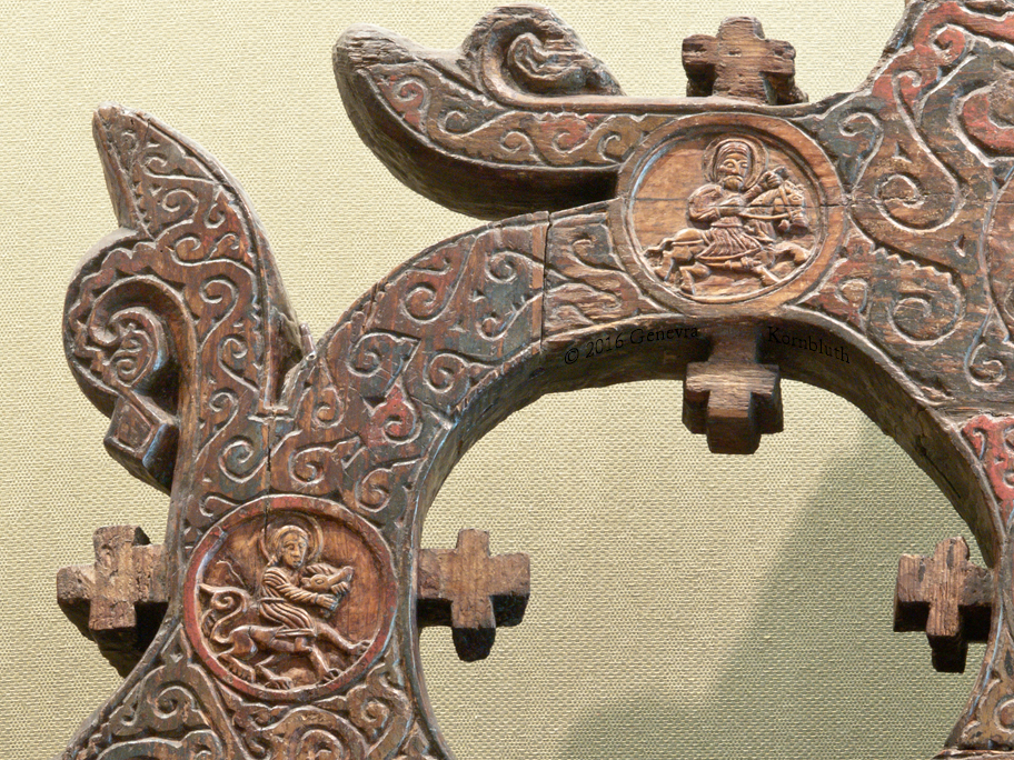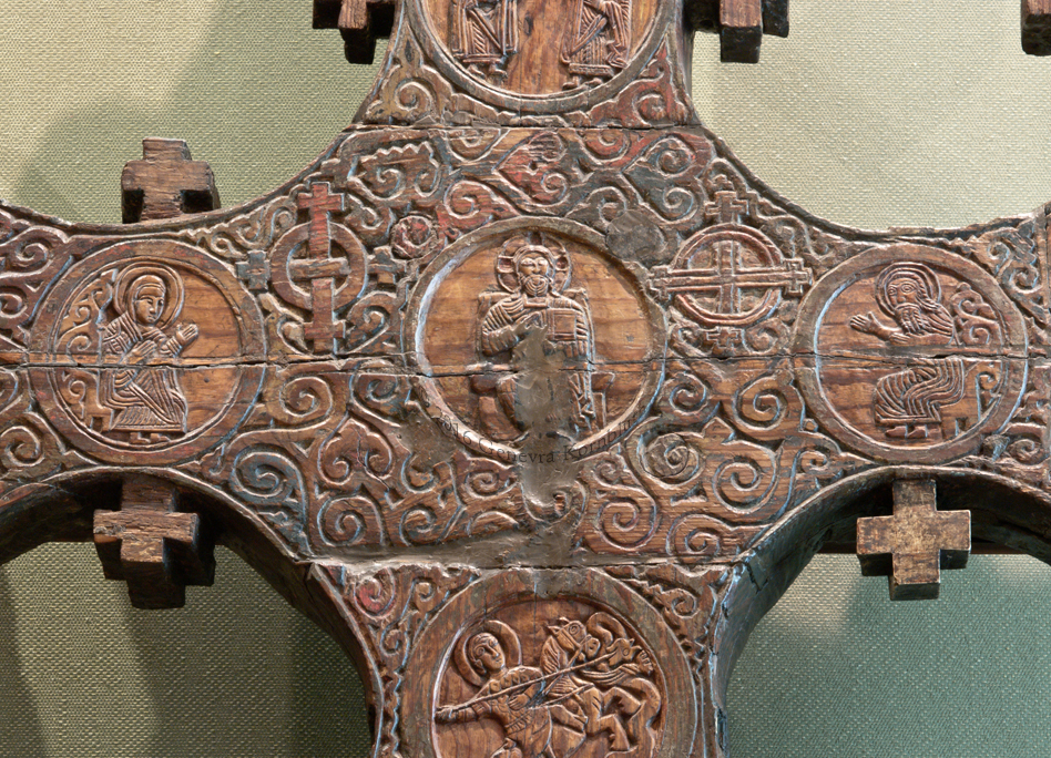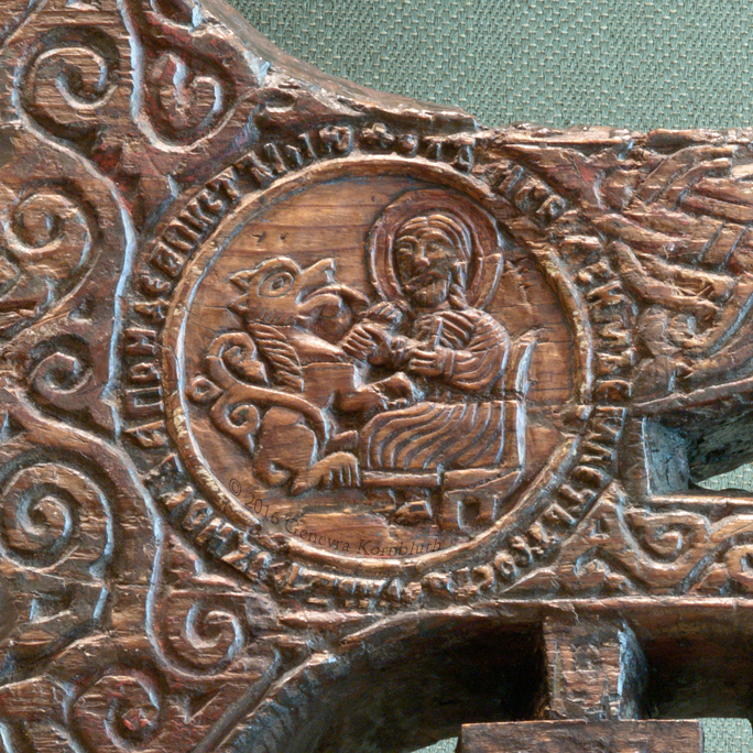 Lyudogoshch/Ludogoshchensky cross from the Church of Sts. Flora and Lavra on Lyudogoschaya Street, Novgorod Yakov Fedosov (signed), Novgorod 1359 wood and tempera, 211 x 116 x 11.3 cm Slavonic inscription on shaft: This cross was erected in the year of 6867 [1359], on the 12th day of June Lord, have mercy on all Christians, wherever they pray to you with faith and clean heart Support those of Lyudogoshch who erected this cross, and me, underwritten. Novgorod State Museum of History, Architecture, and Arts The Kremlin, Veliky Novgorod |
