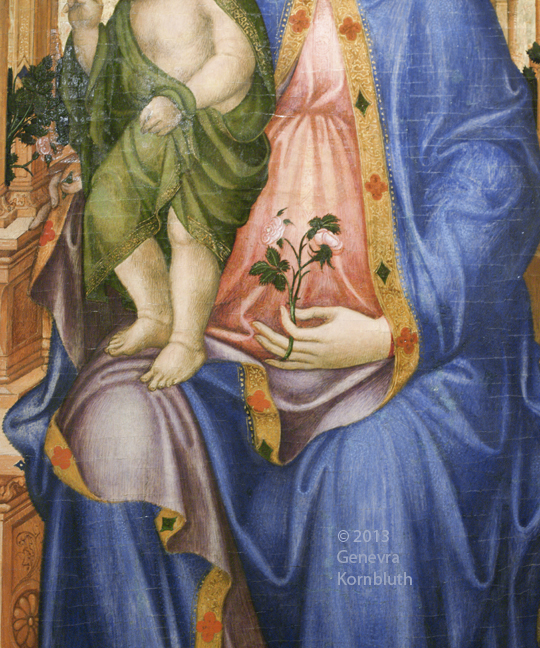 Historical Archive: Virgin and Child Enthroned Michele Giambono ((Michele Giovanni Bono, active Venice 1420, died 1462), c.1440-early 1450s tempera and gold on linden wood, 121.5 x 56.5 cm Budapest, Museum of Fine Arts 1029