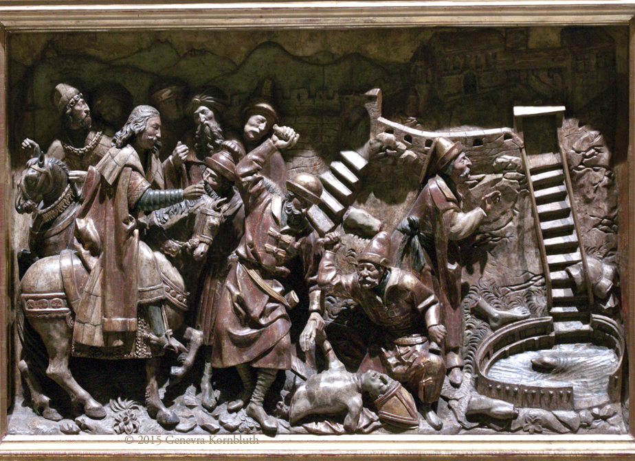 Historical Archive: Life of St. Stanislaus the Bishop (d.1079) Triptych from a church in Pławno Krakow c.1510-20, painted and gilt limewood side wings each 145.3 x 46.6 cm, center 145 x 93 cm Warsaw, National Museum Śr. 18 |