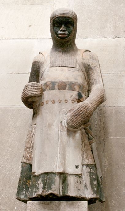 Historical Archive: Magdeburg Saint Maurice sandstone, nose tip and lower legs missing, present height 115 cm (45.3 inches) around 1240-1260 south side of choir Magdeburg, Cathedral of Saints Maurice and Catherine