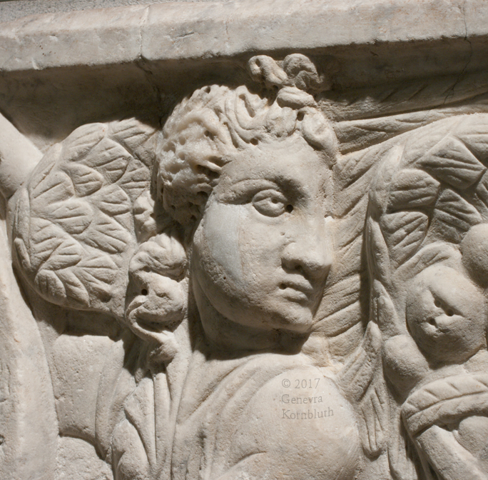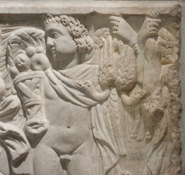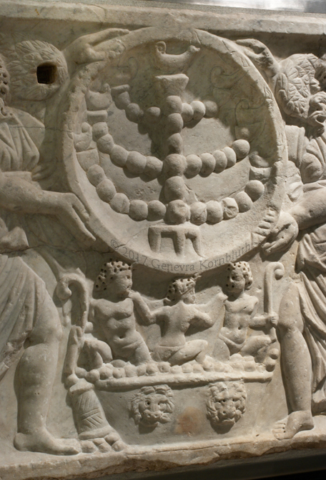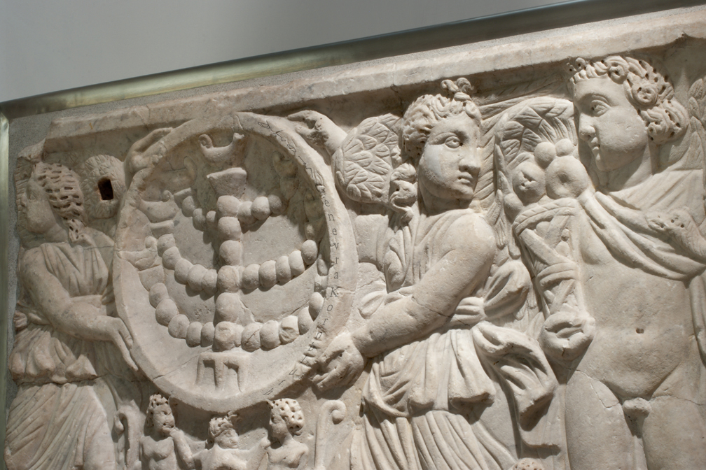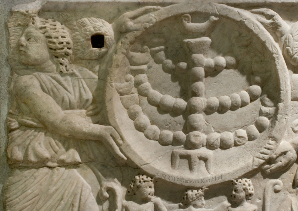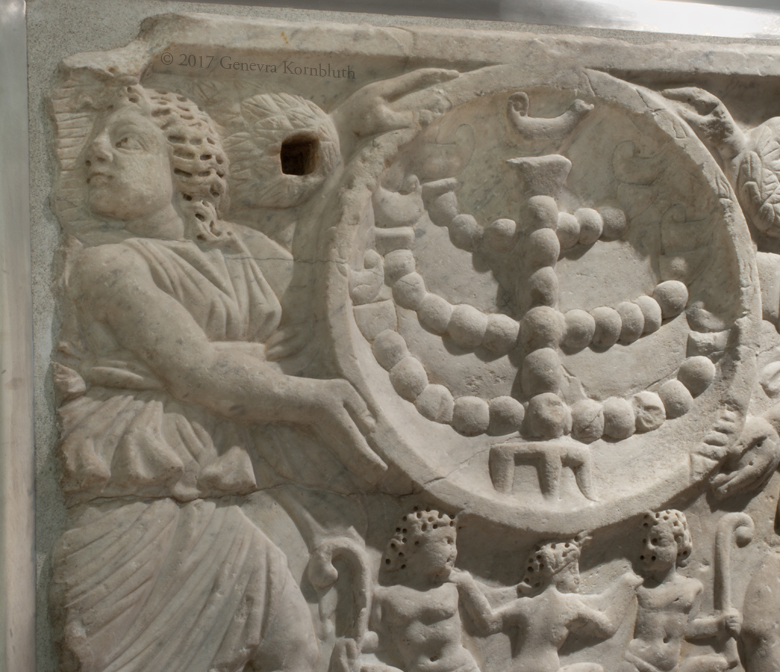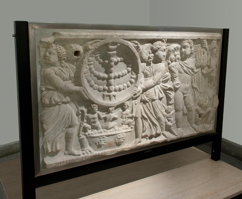 Historical Archive: Menorah Sarcophagus fragmentary seasons sarcophagus from the Athanasius Kirchner collection, Rome mid-third to mid-fourth century CE marble, 126 x 70 cm (49.6 x 27.6 inches) Rome, Museo Nazionale Romano 67611 |