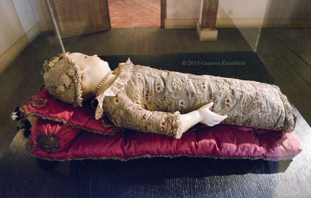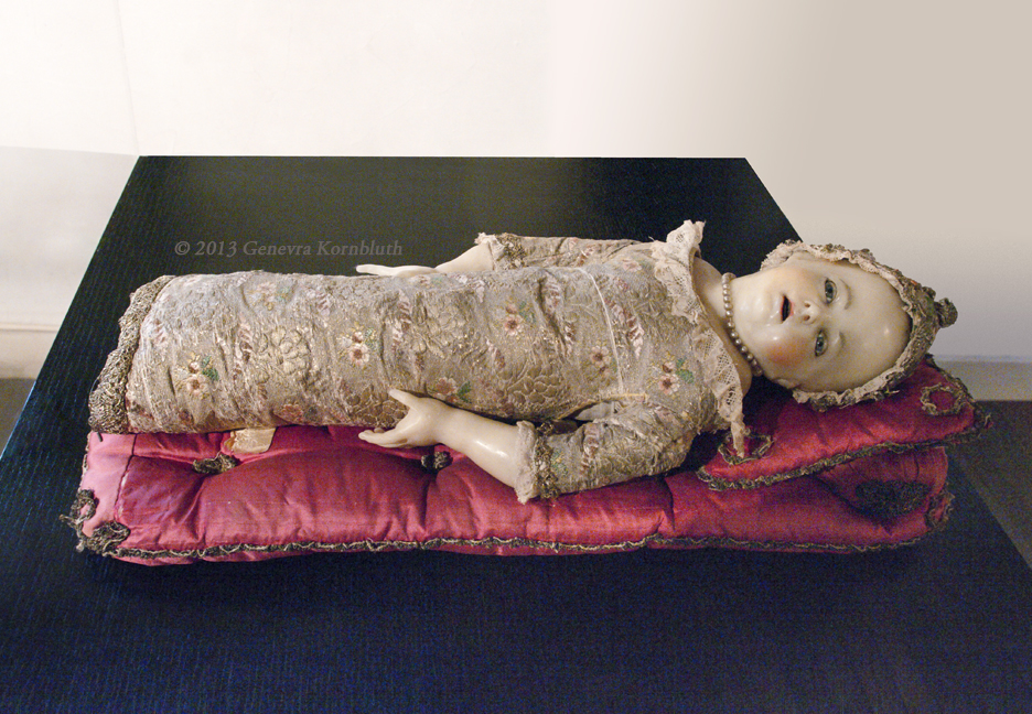 Christ child with closing eyes, wax and cloth, 1773 gift to Louise de France from her sister Victoire, MAHSD