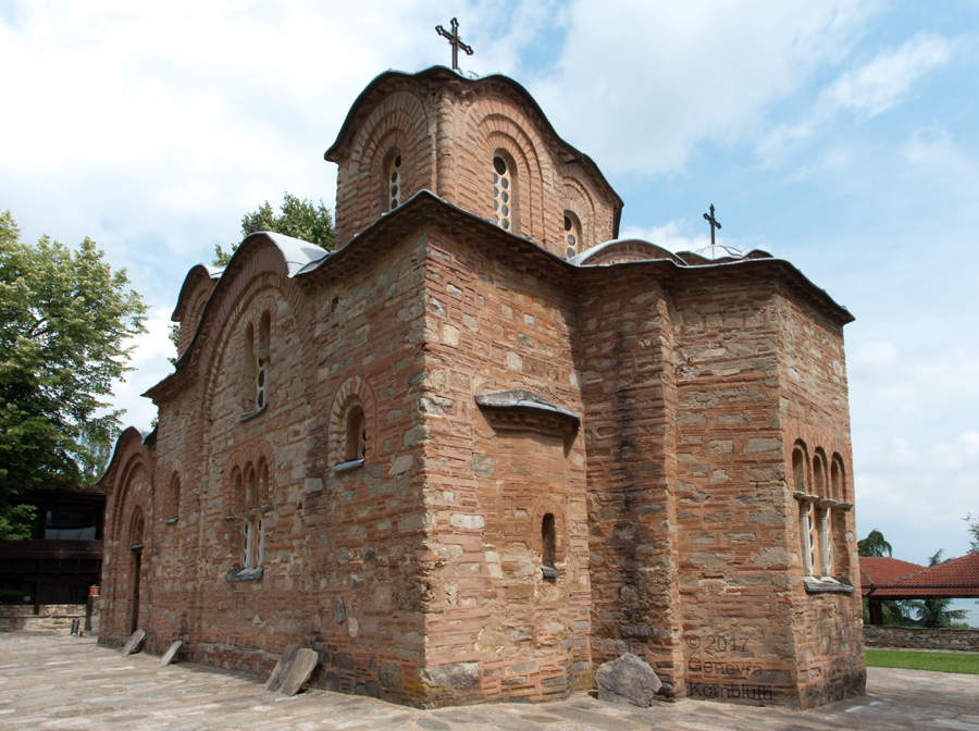 Historical Archive: Church of St. Panteleimon dated 1164 commissioned by Alexios Angelos Komnenos restored 16th century and 1885 Gorno Nerezi, Republic of North Macedonia |