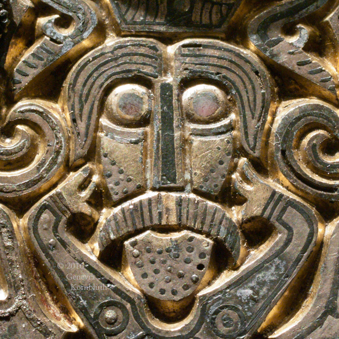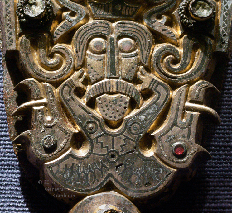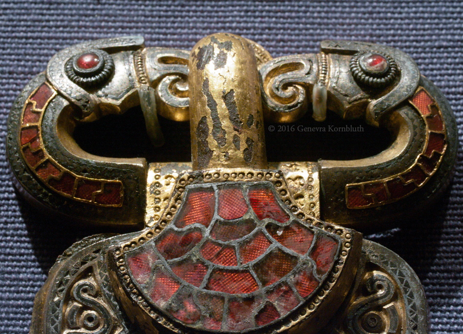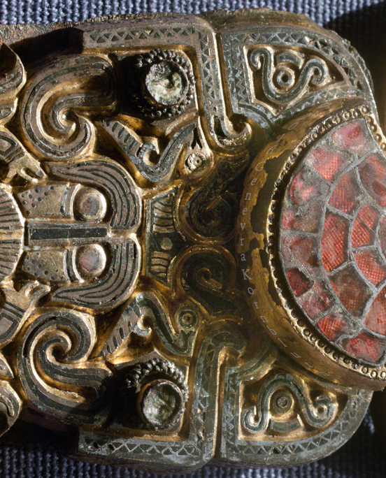 Åker Buckle from Åker, Vang, Hedmark, Norway bronze, silver with gilding and niello, copper, and garnet 11 cm long (4.3 inches) buckle for sword belt, second half of fifth century to around 600 Oslo Historical Museum C4901