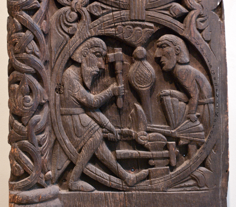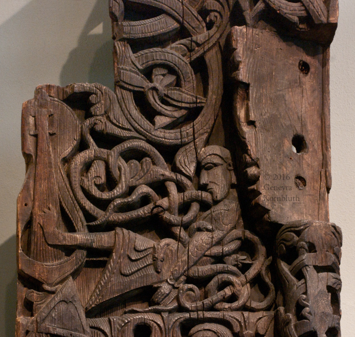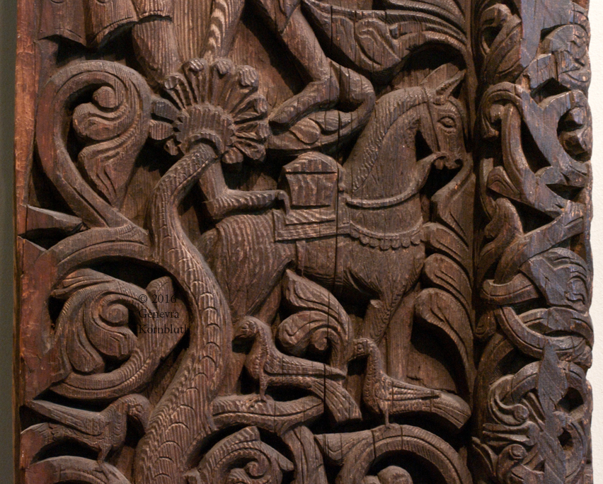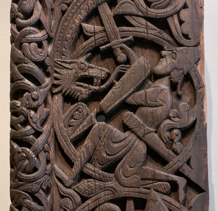 Stave church portal pine wood, 3.5 Alen high (approx. 220 cm, 7 feet 2.6 inches) from Hylestad Parish (Setesdal) stave church at Bjørgum late twelfth/early thirteenth century demolished 1838 Oslo Historical Museum C4321 |
