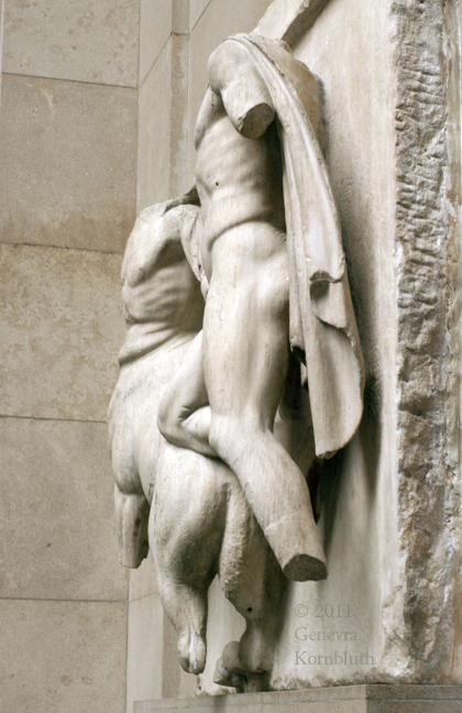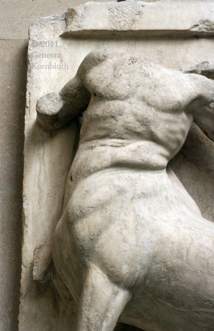 Historical Archive: South Metope III: Centaur and Lapith Marble, 129 cm. 447-432 BCE. Sculpture from the Parthenon, Athens: "Elgin Marbles", British Museum 1816,0610.2