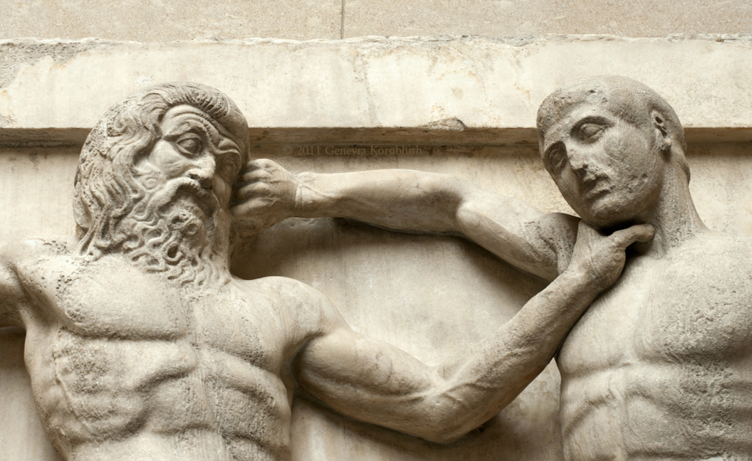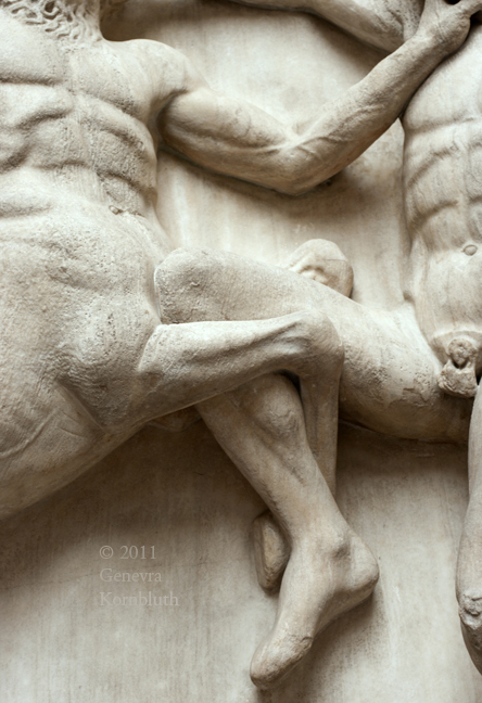 Historical Archive: South Metope XXXI: Centaur and Lapith Marble, 132 cm. 447-432 BCE. Sculpture from the Parthenon, Athens: "Elgin Marbles", British Museum 1816,0610.15