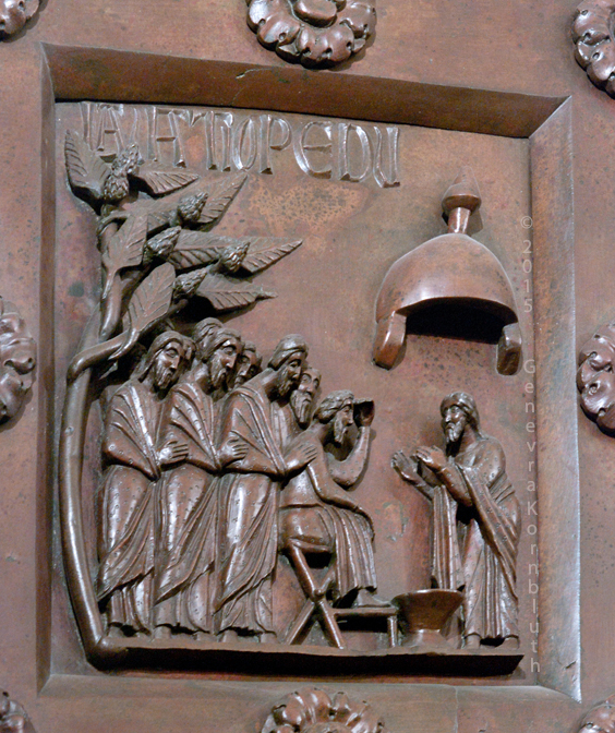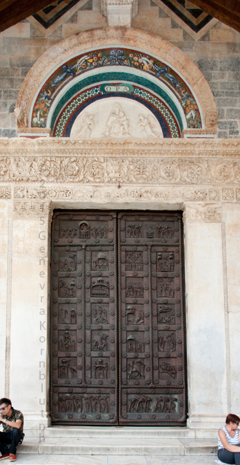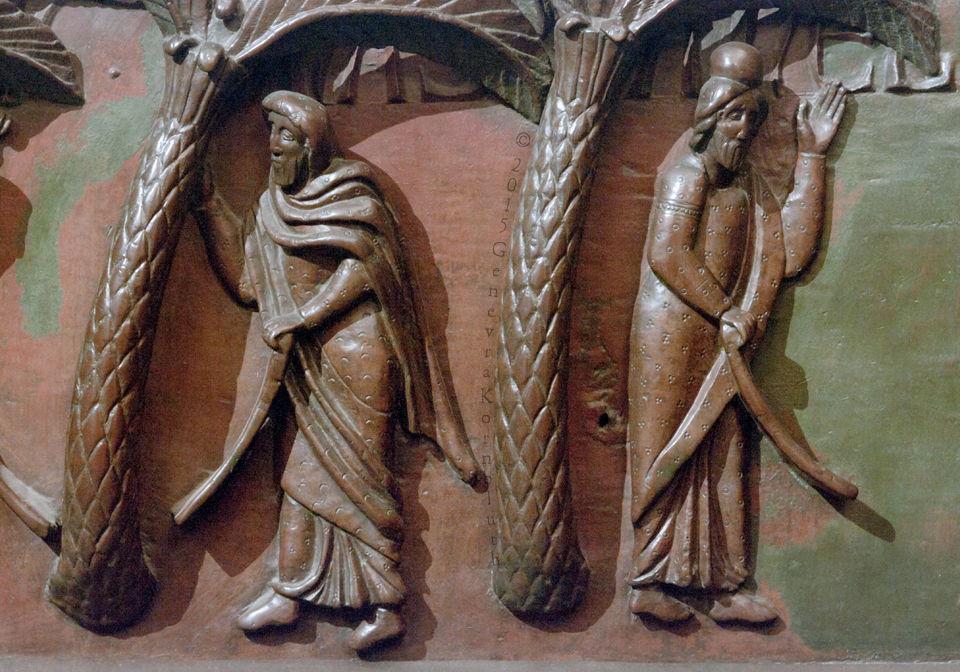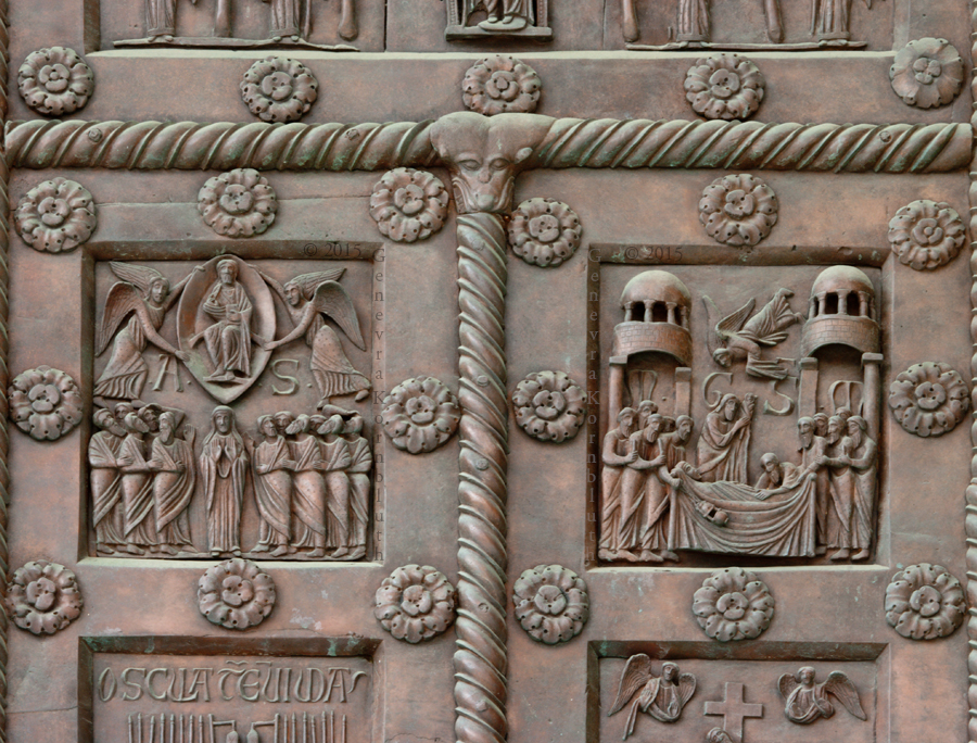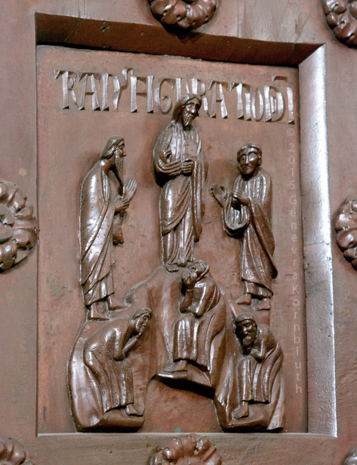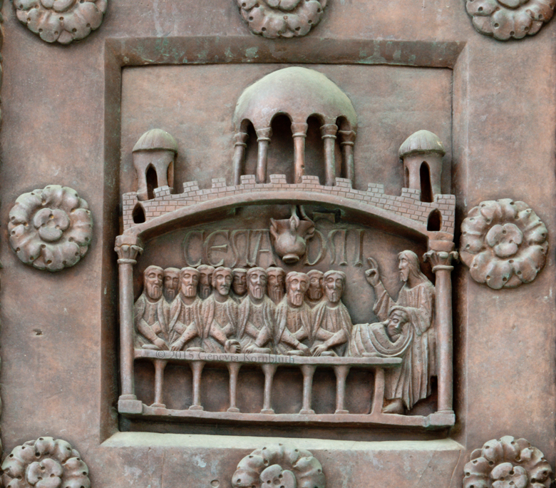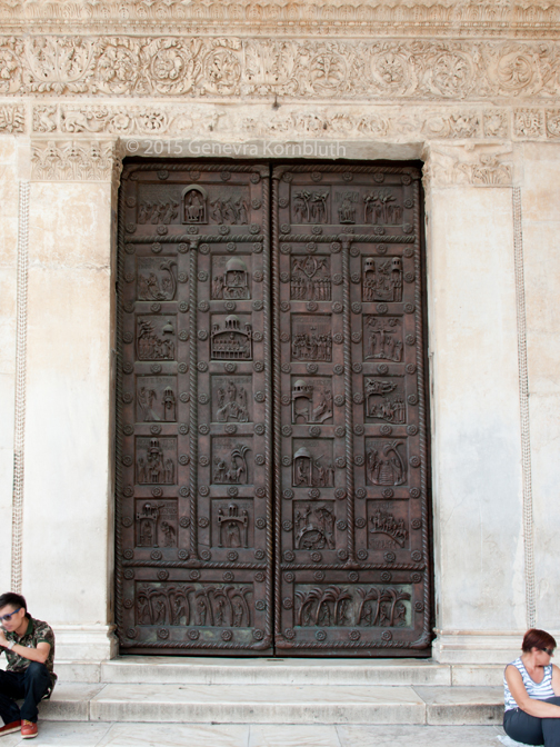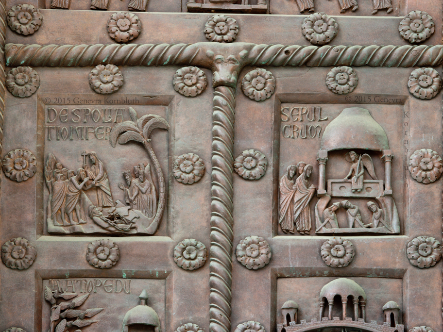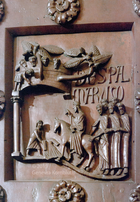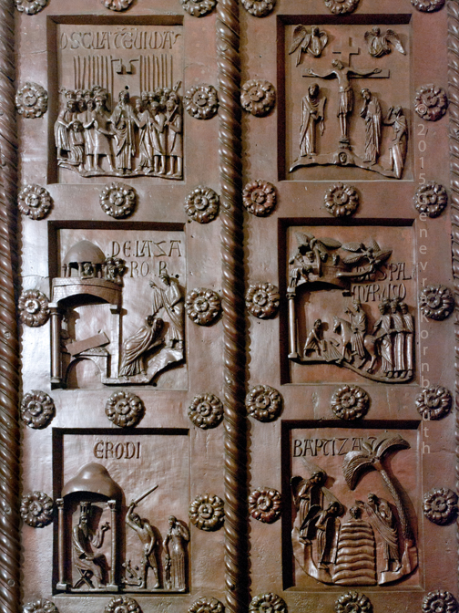 Historical Archive: St Rainerius Door, Porta di Ranieri bronze south transept doors, 470 x 302 cm (185 x 119 inches), Pisa Cathedral Bonanno da Pisa/Bonanno Pisano/Bonannus of Pisa (pseudonym?), around 1180 The original panels are now in the Museo dell'Opera del Duomo. Panels on the cathedral are reproductions. All photos are marked either "original" (in museum) or "copy" (on cathedral). |