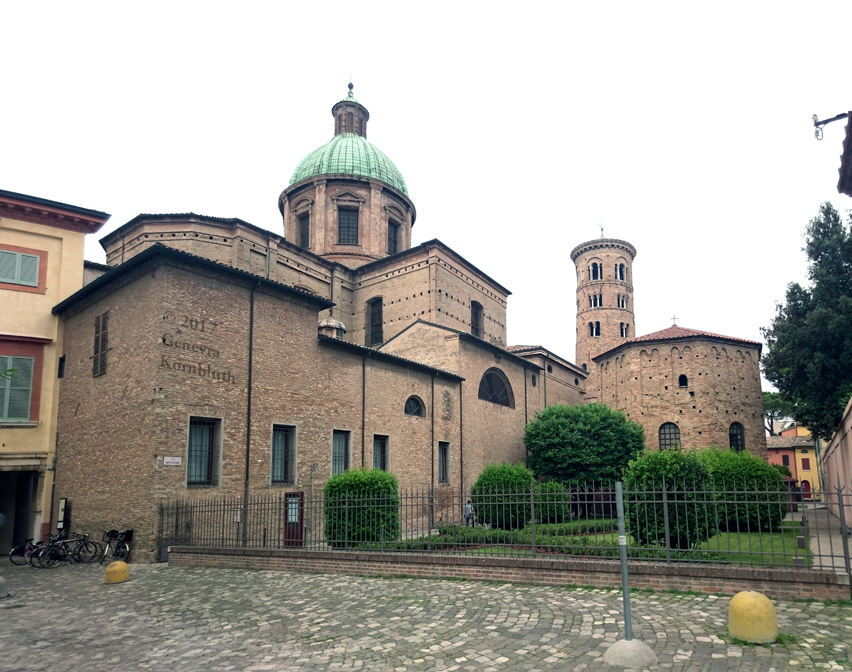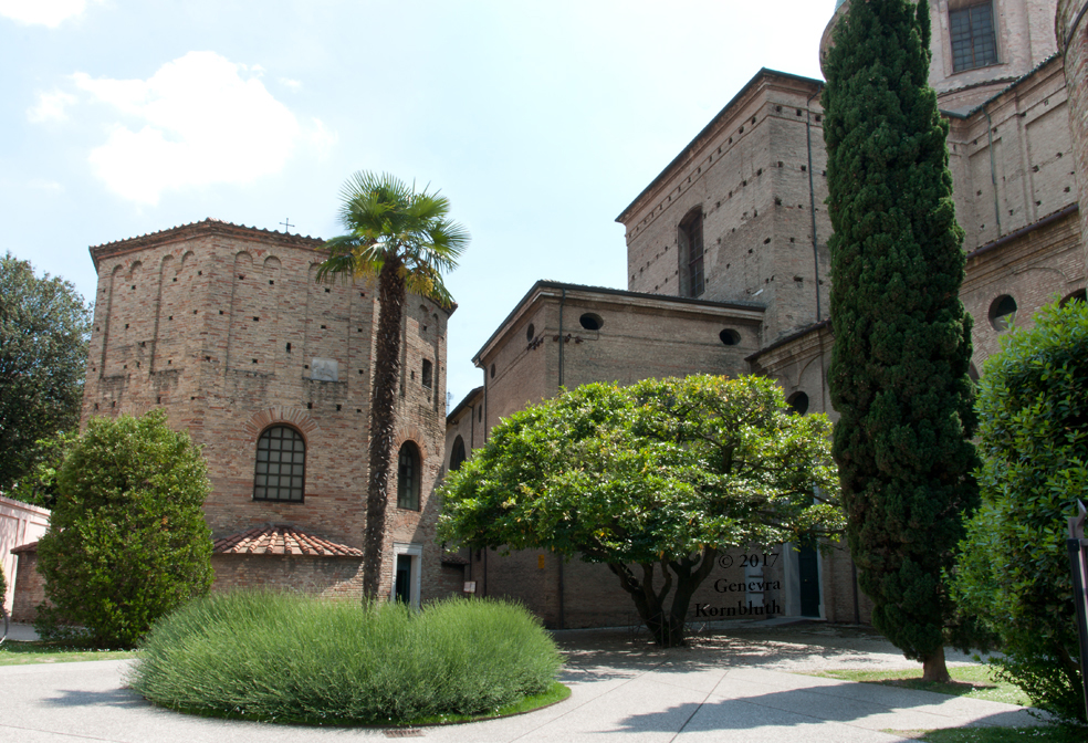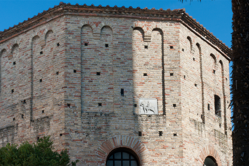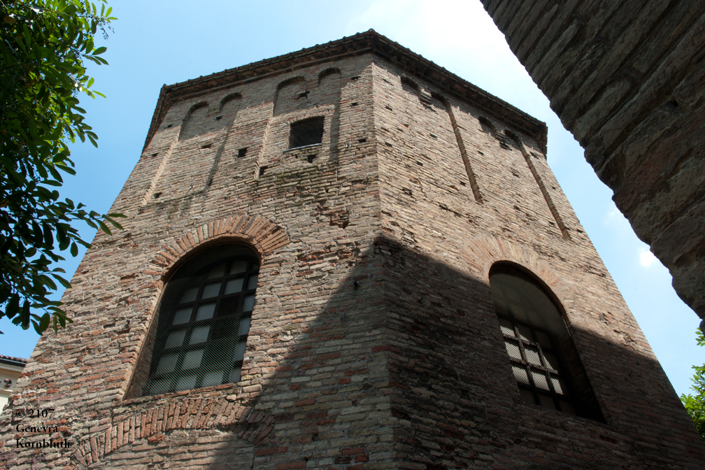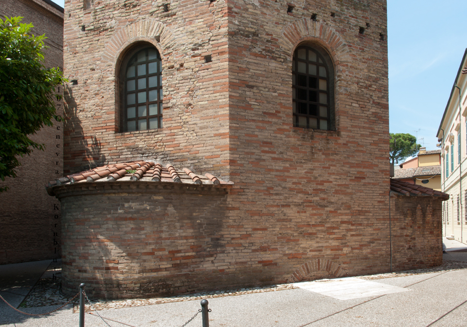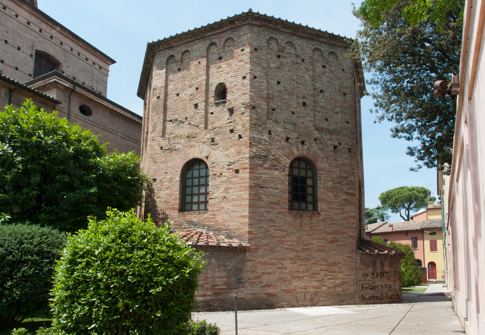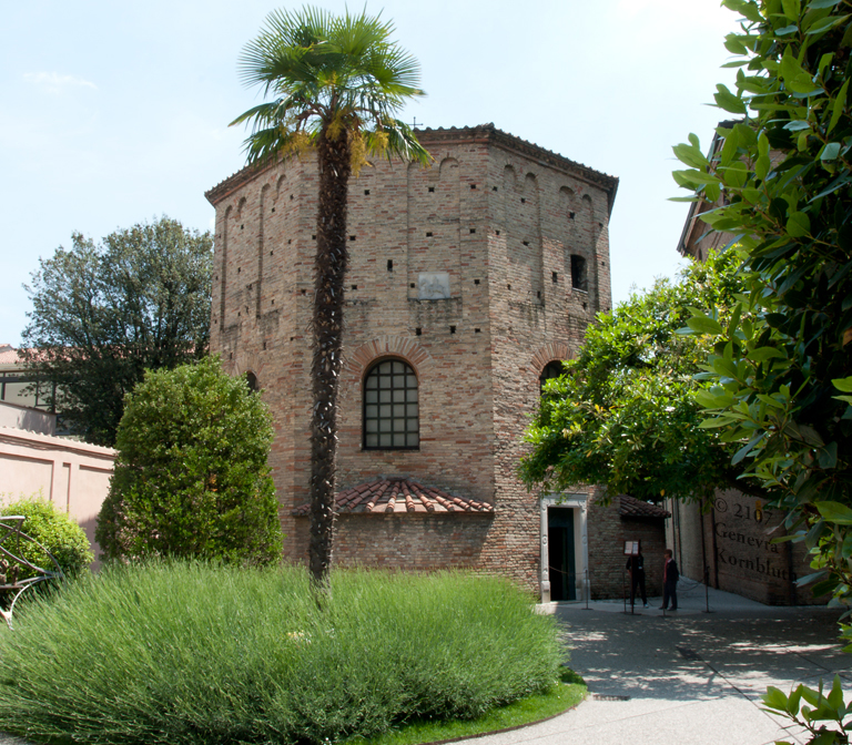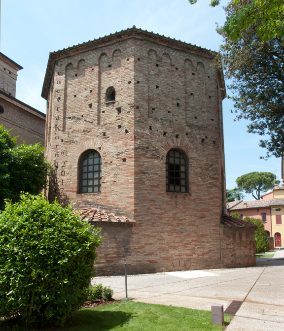 Historical Archive: Neonian (Orthodox) baptistery, Ravenna Exterior initial construction late fourth or early fifth century exterior from above window arches to roof, dome, and interior under Bishop Neon (c. 451-c. 473) exterior below window arches probably restored under Archbishop Theodore (677-691) Campanile (bell tower) 10th c. Cathedral on the site of the Basilica Ursiana: Giovanni Francesco Buonamici 1734-45 |