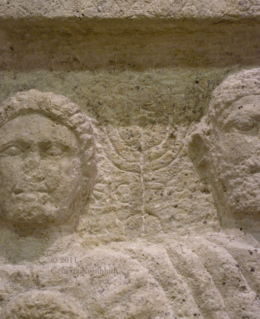 grave stone of the family of Claudia Maximilla with menorah, Alberti-Irsa 4th c., HNM 62