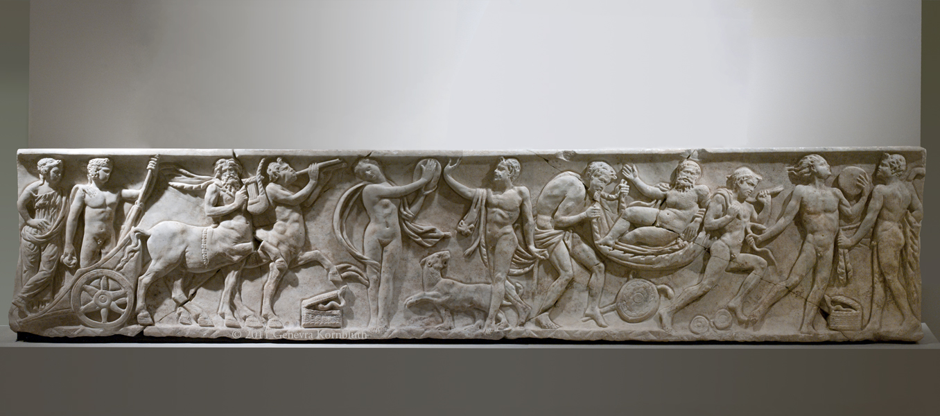 sarcophagus with Bacchic procession, marble, c.150-200, KM 1981.03.0001. This work has its own page.