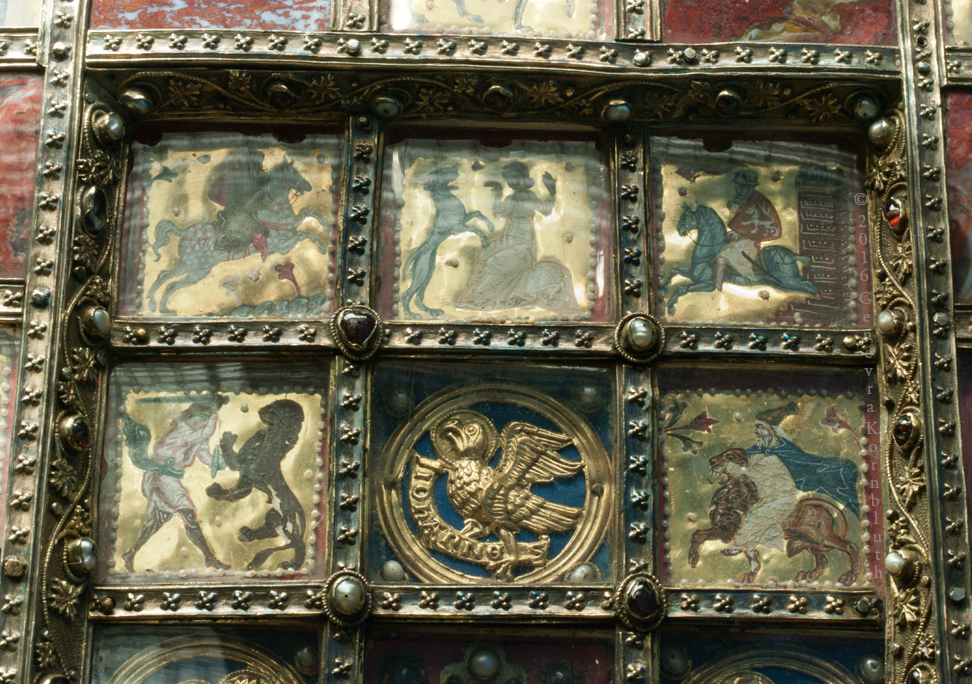 Bernhard Witte 1930s restoration: Ambo of Henry II, 1002-1014, Aachen cathedral. The ambo and cathedral have their own pages.