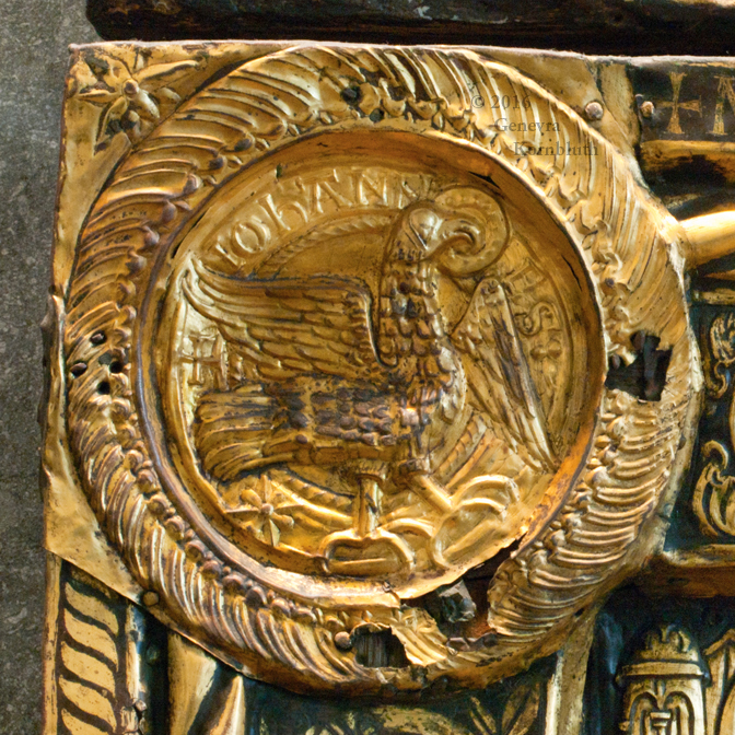 Lisbjerg Altar frontal/retable/arch c.1135-50, gilded copper, NMD D287. This work has its own page with another John in full figure.