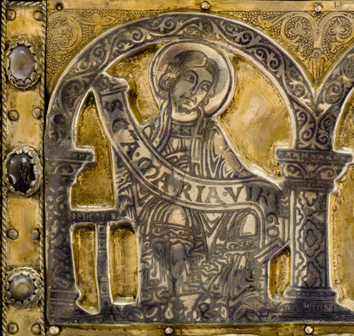 Christ in Majesty with evangelist symbols, copper gilt and enamel, France c.1210, NGA 1961.9.182. This work has its own page.