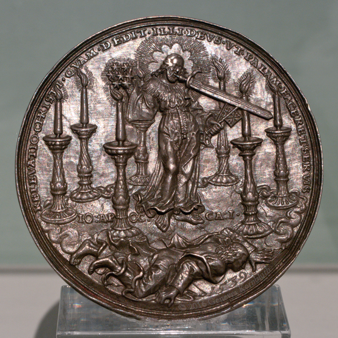 John the Evangelist having vision of Revelation: Apocalypse medal, Hans Reinhart the Elder 1539, silver, Pushkin Bec 54, 13r