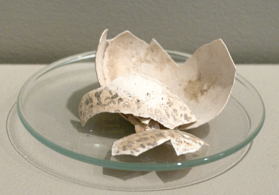 egg shell from Seleucia (Iraq) with ink gibberish inscription, possibly to break a curse, 3rd c. BCE-3rd c. CE or 4th-7th c. CE, KM 0000.01.9050