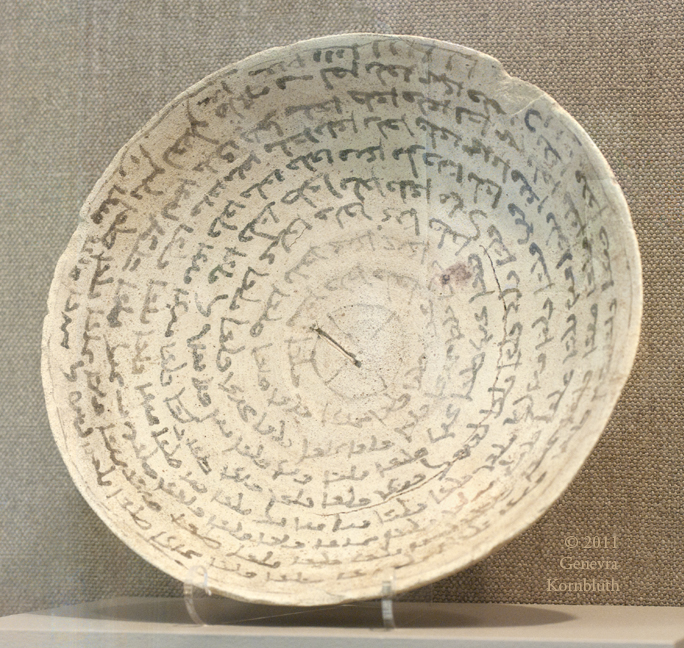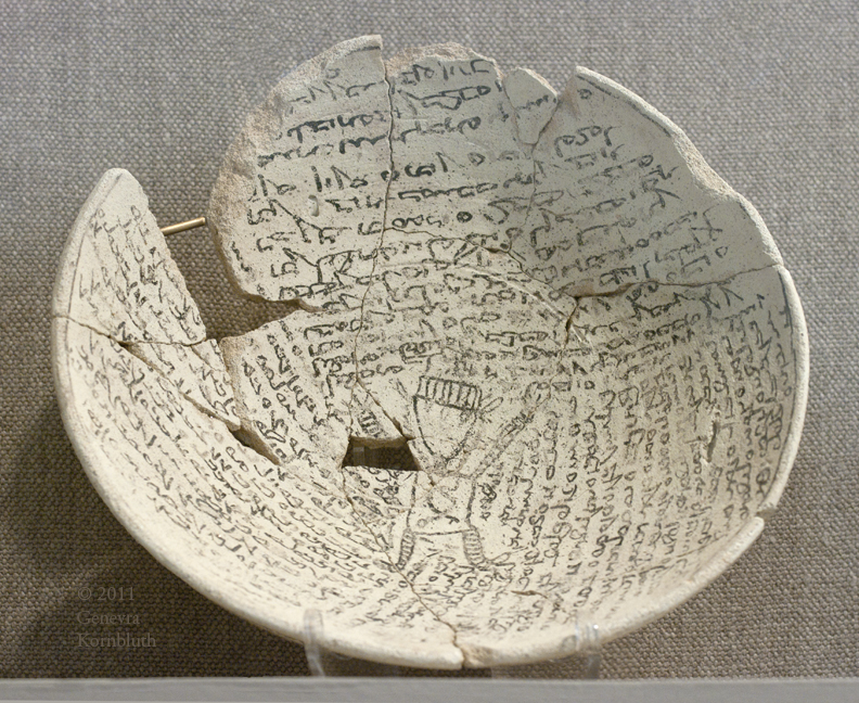 incantation bowl with Aramaic inscription to protect the woman Ngray from illness and curses, from Seleucia (Iraq), ceramic and paint, 3rd c. BCE-3rd c. CE or 4th-7th c. CE, KM 0000.01.9504